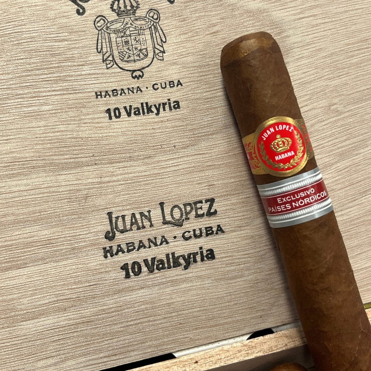 Juan Lopez Valkyria 是由 Habanos S.A. 专为北欧和波罗的海国家(丹麦、爱沙尼亚、芬兰、冰岛、拉脱维亚、立陶宛、挪威和瑞典)独家生产的备受期待的 Edición Regional 雪茄。其名称源自北欧神话中的瓦尔基里,象征着强大而迷人的特质。虽然官方定为 2023 年发布,但这些特别雪茄于 2025 年 4 月初开始向指定地区发运。作为限量生产,Juan Lopez Valkyria 是收藏家和爱好者渴望体验这一受尊敬古巴品牌独特地区产品的抢手货。